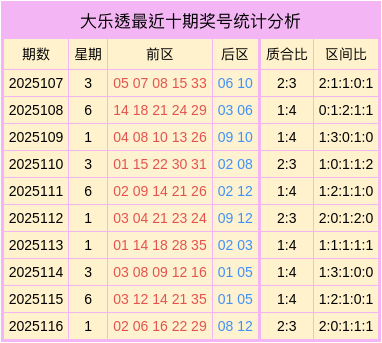 上期回想:大乐透2025116期开出奖号:前区02、06、16、22、29,后区08、12。